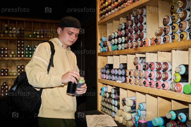 Парень на выставке в магазине искусств и ремесел