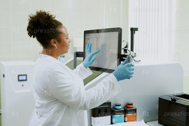 Медицинский профессионал, использующий продвинутый сенсорный монитор