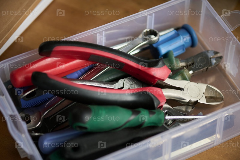 Подержанные ручные инструменты DIY в контейнере