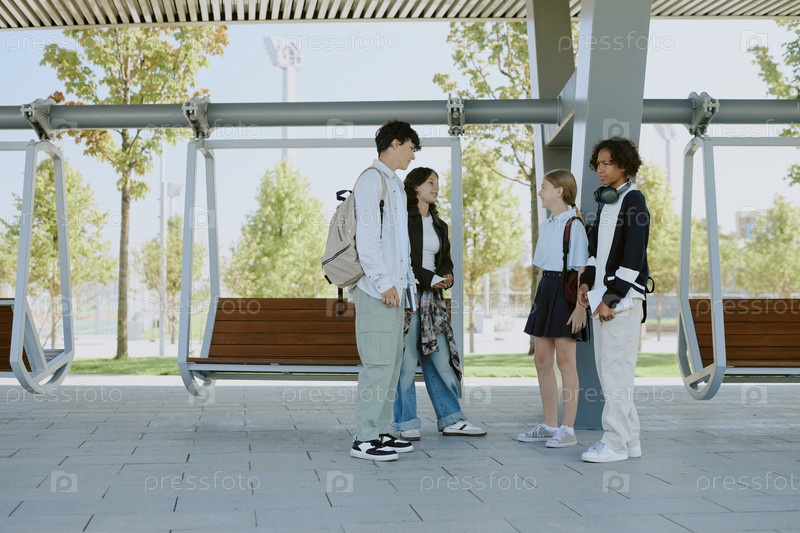 Компания подростков встречается в парке