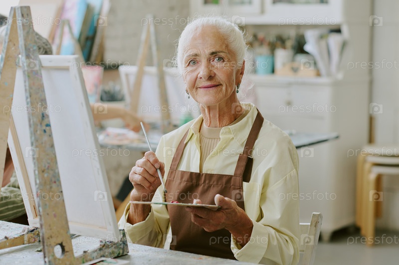 Портрет пожилой женщины с инструментами для покраски