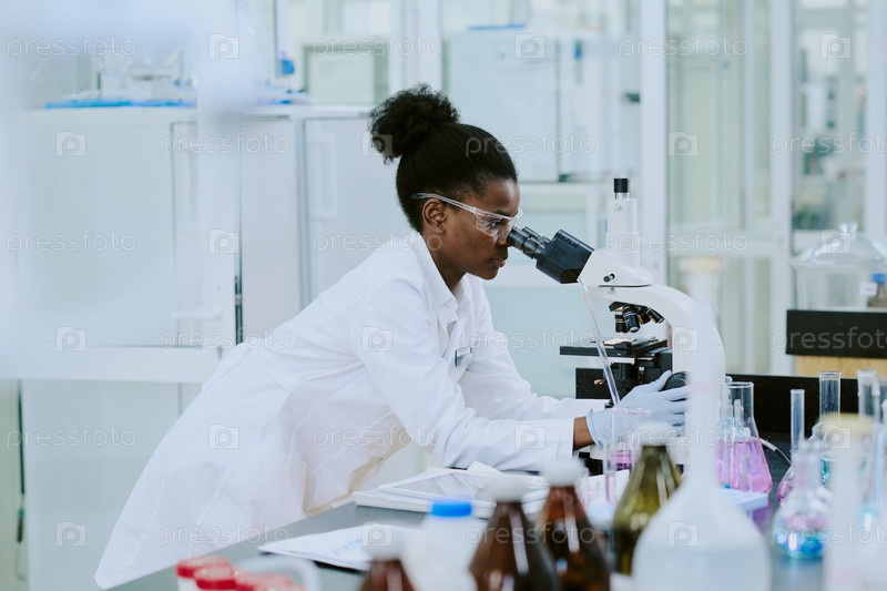 Ученый, наблюдающий с помощью микроскопа в лабораторных условиях