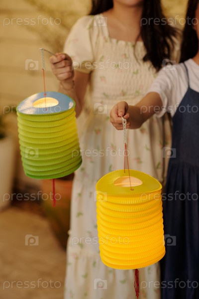 Мать и дочь держат китайские фонари