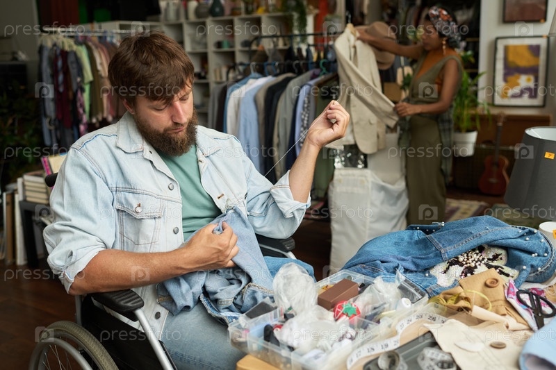 Мужчина Upcycling подержанные голубые джинсы