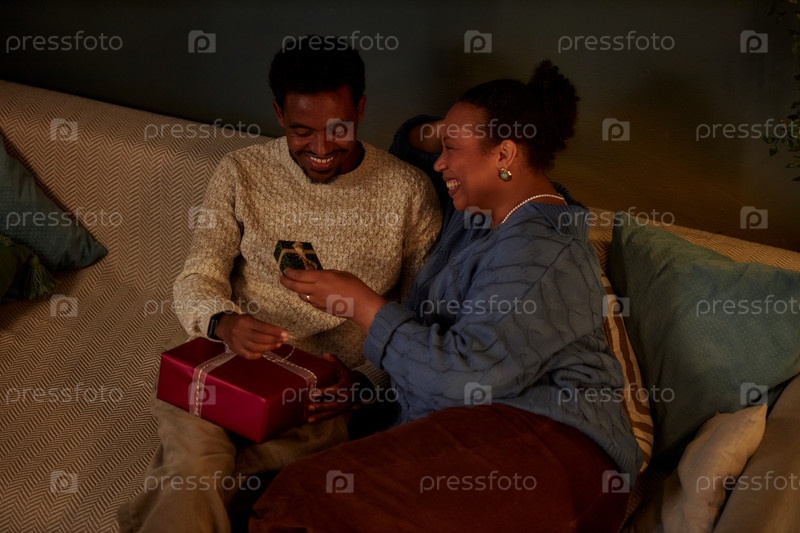 Черная пара обменивается подарками на Рождество