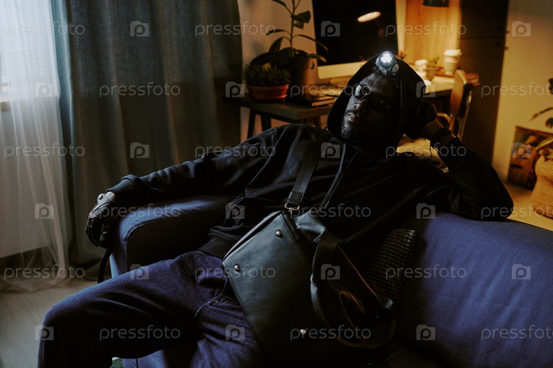 Афроамериканский вор отдыхает на диване