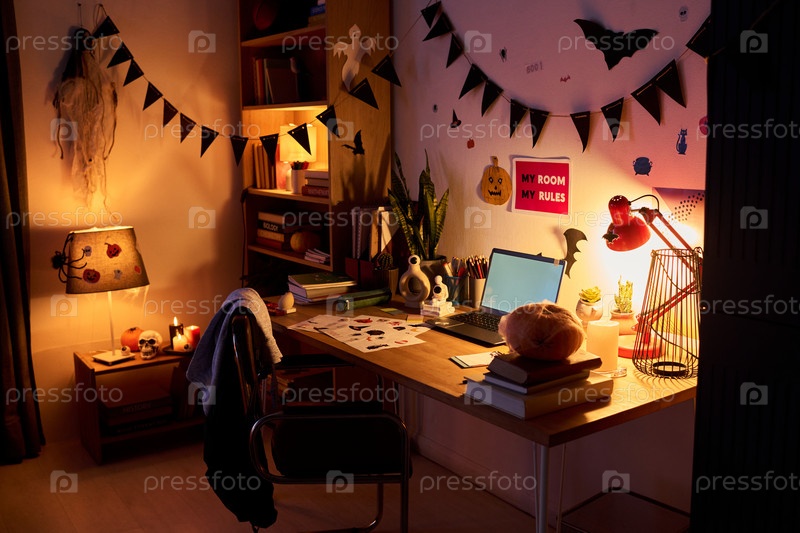 Интерьер комнаты с украшениями Хэллоуина