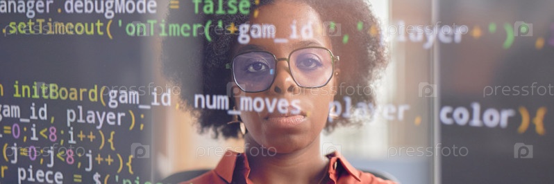 Отражение лица женщин-программисток на экране компьютера с помощью кода