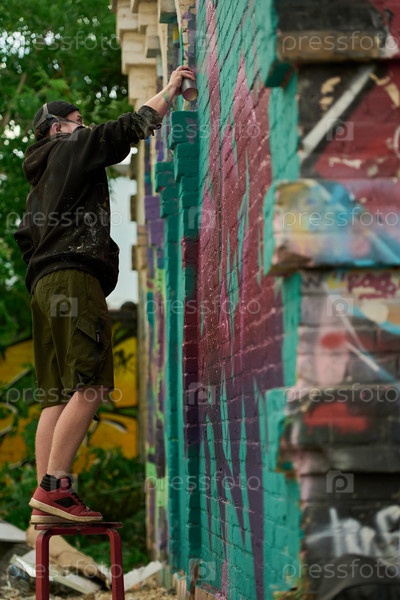 Разбрызгивание краски на стене из диспенсера
