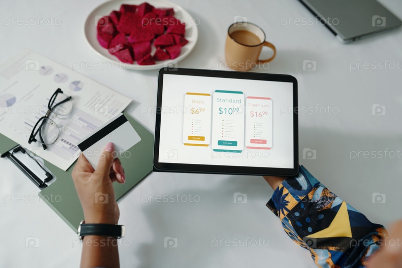 Содержание цифрового устройства с ценовыми планами, отображаемыми