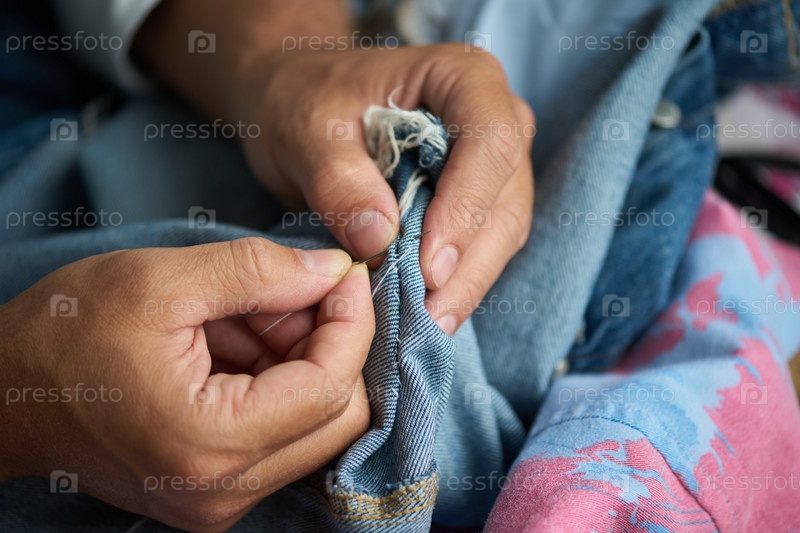 Приклеивание иглы через джинсовый текстиль