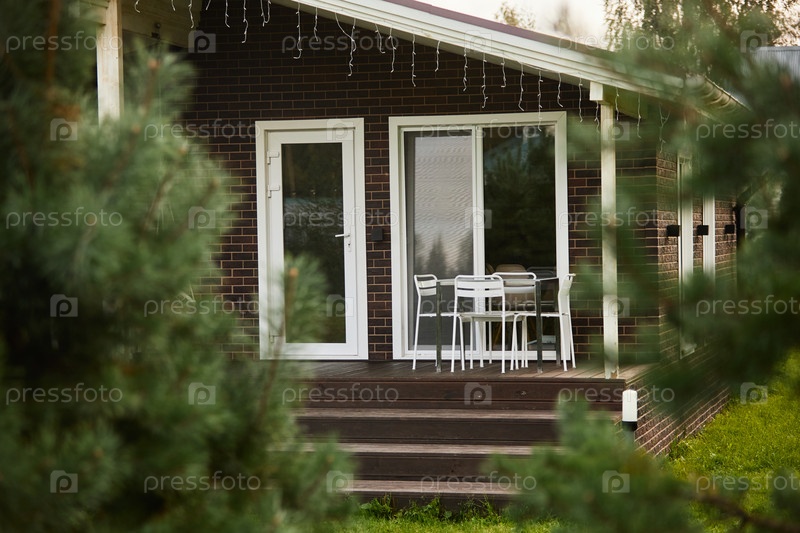 Милый дом с деревьями во дворе