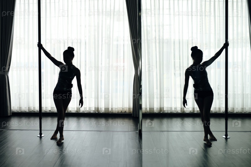 Силуэт женщины, практикующей танец на столбе