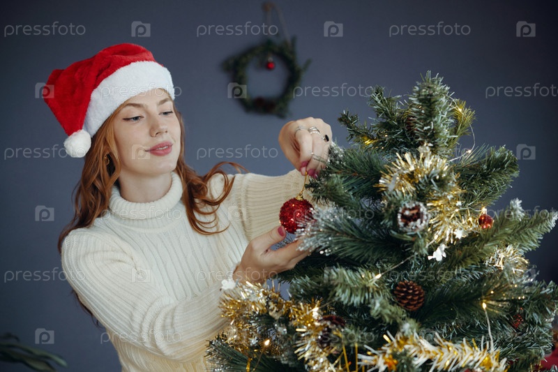 Украшение рождественской елки праздничными украшениями