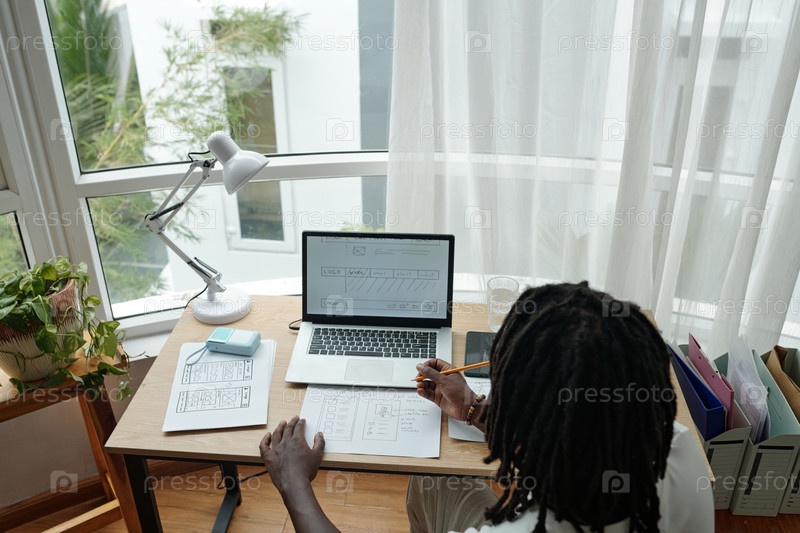 Мультирасовая женщина, работающая над проектом в домашнем офисе