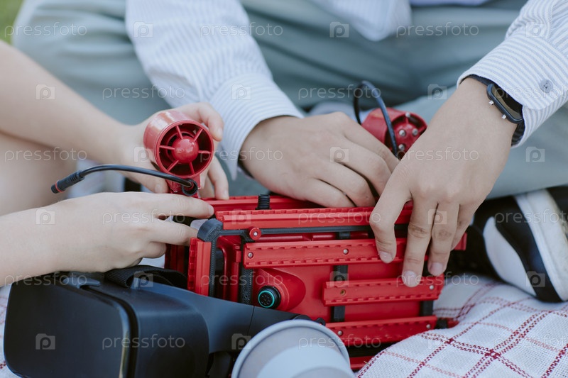 Непризнанные дети работают над роботом вместе