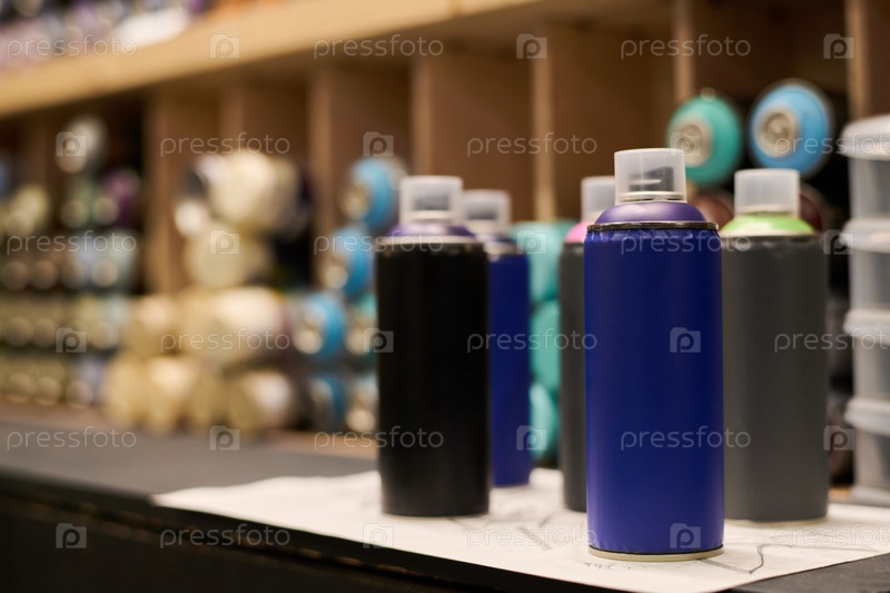 Неоткрытая голубая банка с краской на граффити