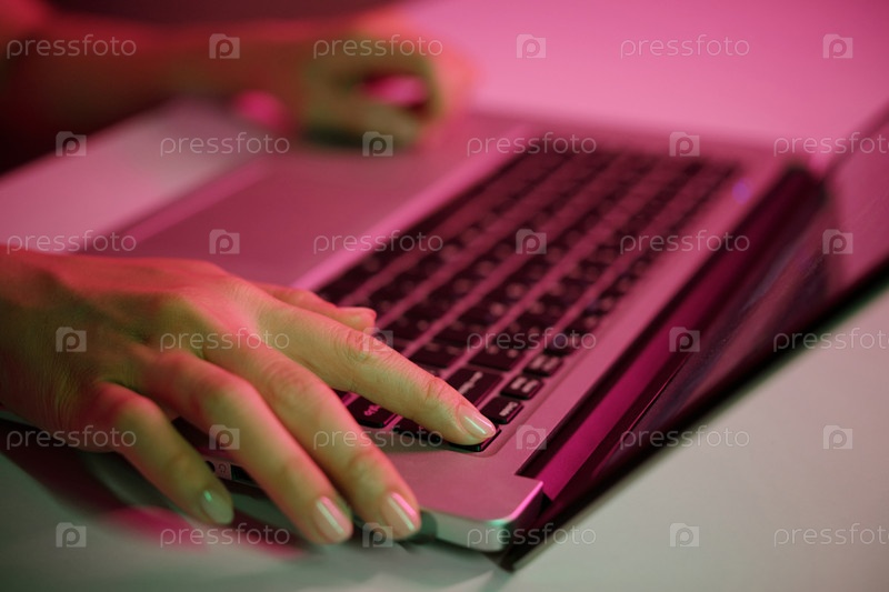 Печать на ноутбуке в тускло освещенном рабочем пространстве