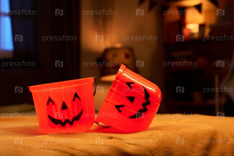 Два апельсиновых ведра для лакомств на Хэллоуин