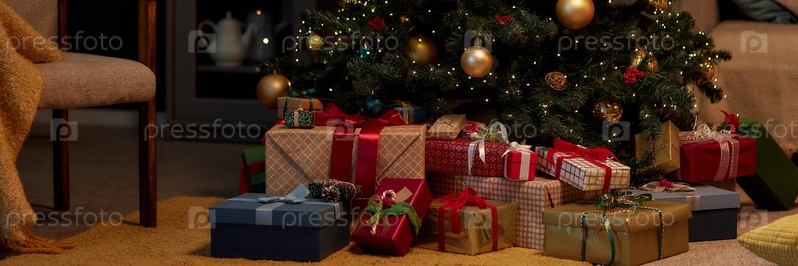 Header Image of Рождественская елка с золотыми акцентами Куча подарков