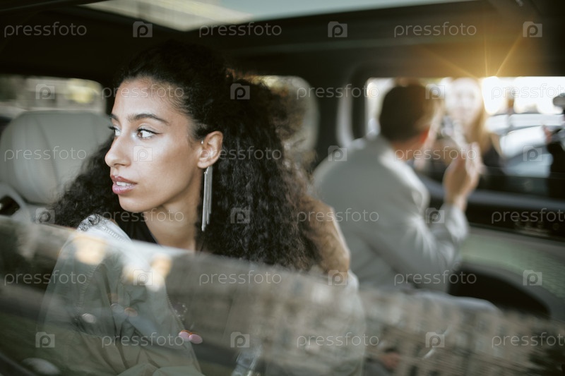 Ближневосточная знаменитость сидит в машине и смотрит из окна