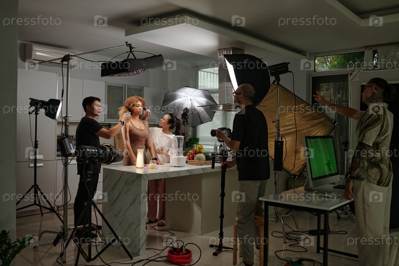 Оператор снимает модель в студии