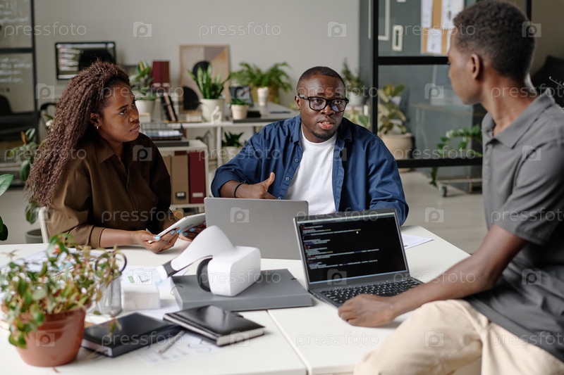 Молодая ИТ-команда во время мозгового штурма