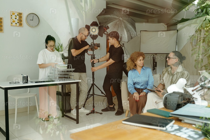 Люди готовятся к съемкам в производственной студии
