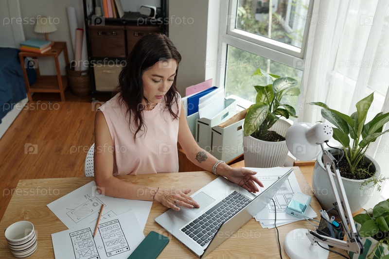 Работа на ноутбуке в домашней офисной обстановке
