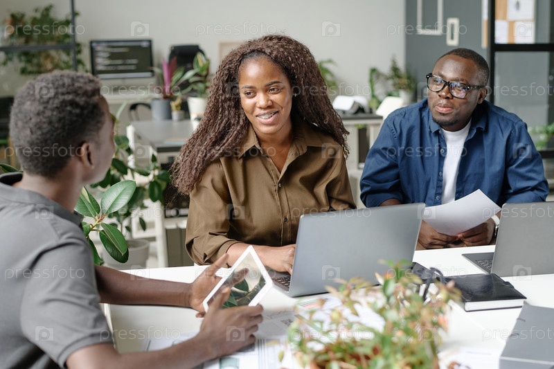 Женщина улыбается, глядя на коллегу