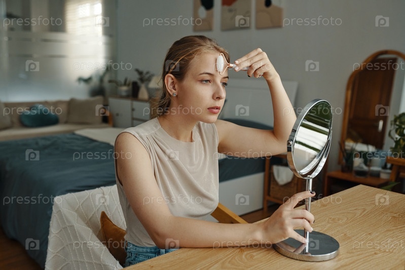 Настройка макияжа с помощью портативного косметического зеркала дома
