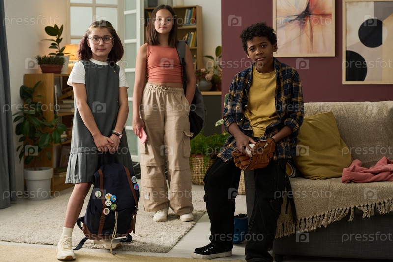 Студенты, готовящиеся к школе в уютной обстановке гостиной