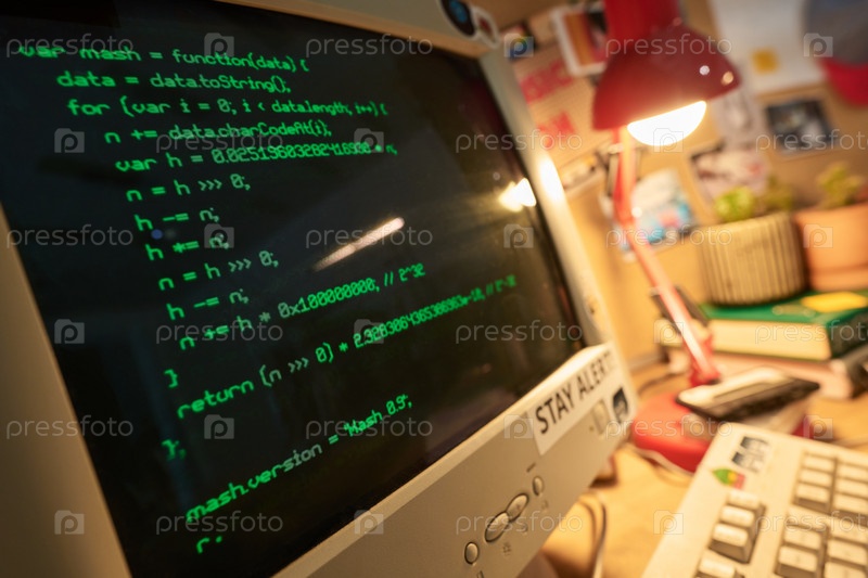 Просмотр экрана компьютера с отображаемыми линиями кода