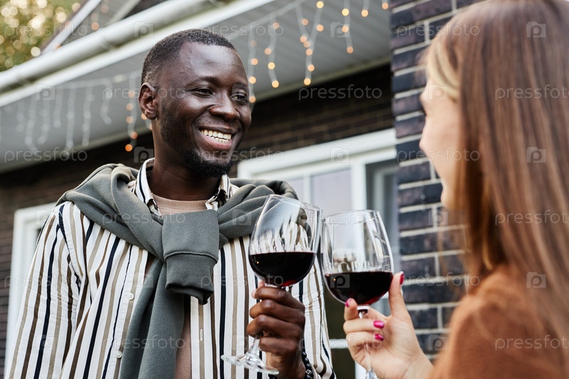Пара скрежет винными бокалами, отмечая праздник