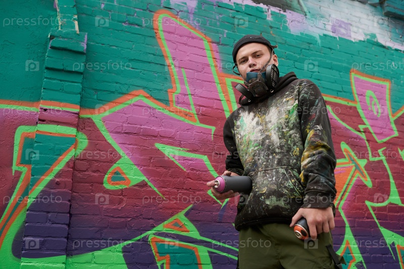 Творческий парень с двумя банками краски