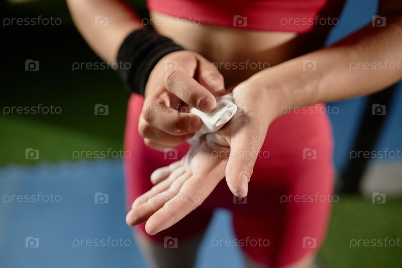 Руки женской гимнастки, выбивающей руки в тренажерном зале