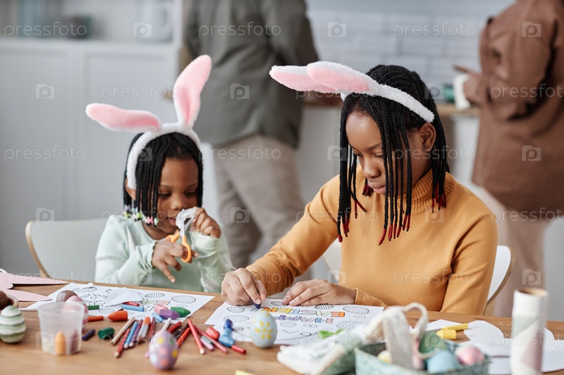 Создание ручных пасхальных ремесел с ушами кроликов за столом