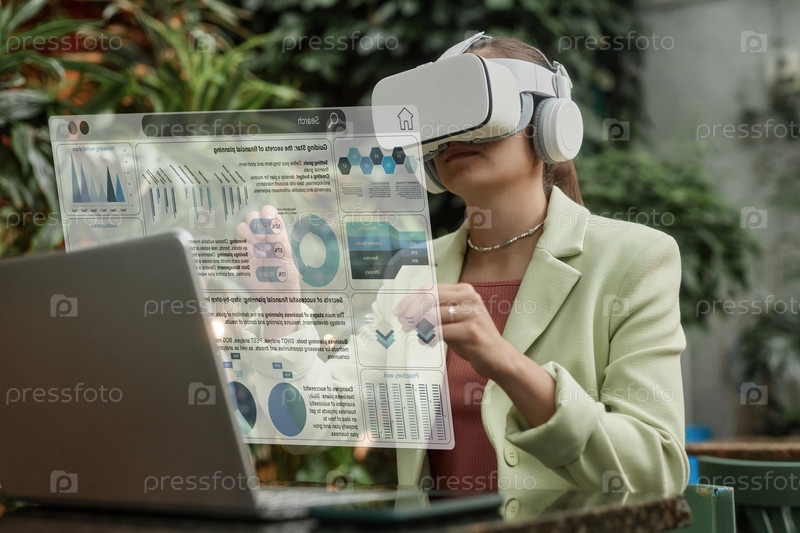 Молодая женщина, использующая презентацию VR