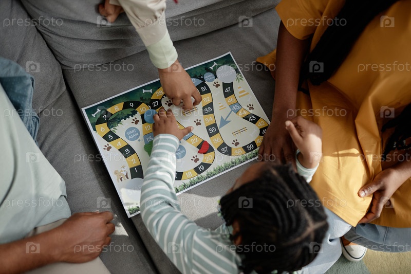 Игра в настольную игру с семьей на уютном диване