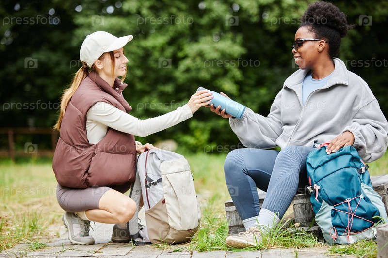 Туристы делятся бутылкой с водой