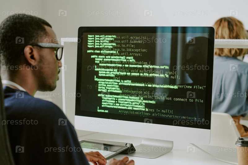 Юный чернокожий специалист тестирует код кибербезопасности