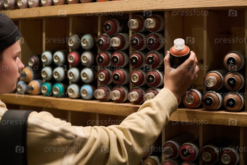 Рука художника, делающего банку с краской