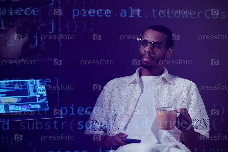 Человек, расслабляющийся с кофе в современном рабочем пространстве