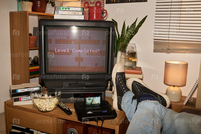 Завершение уровня видеоигры в Retro Gaming Setup