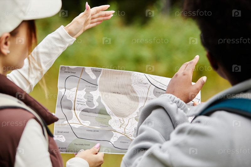 Девочки, удерживающие карту Пешеходные походы