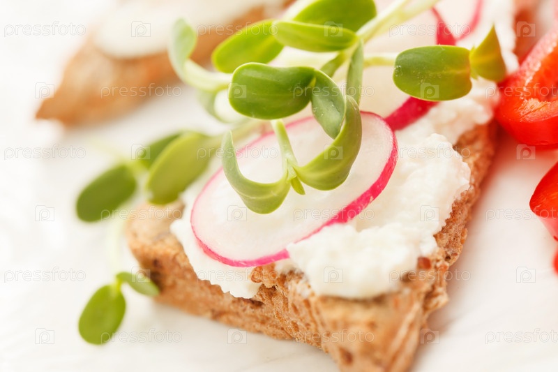 Бутерброды с редисом и ростками подсолнечника
