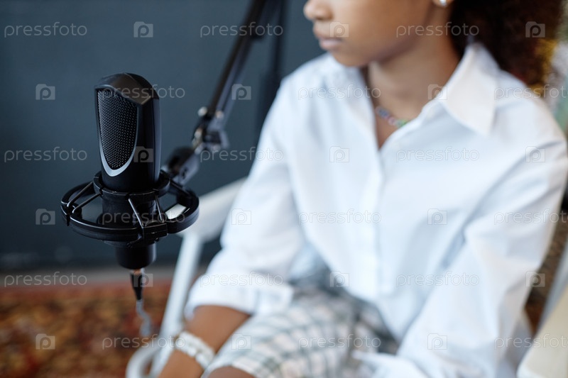 Девушка записывает подкаст