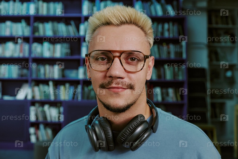 Портрет улыбающегося мужчины в очках с наушниками