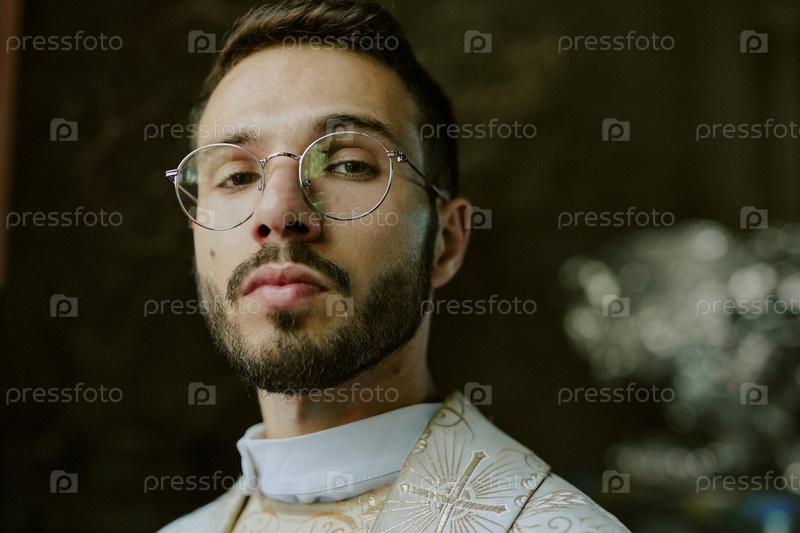 Жестокий священник смотрит на камеру