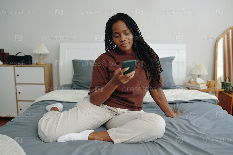 Расслабляясь в постели, просматривая смартфон